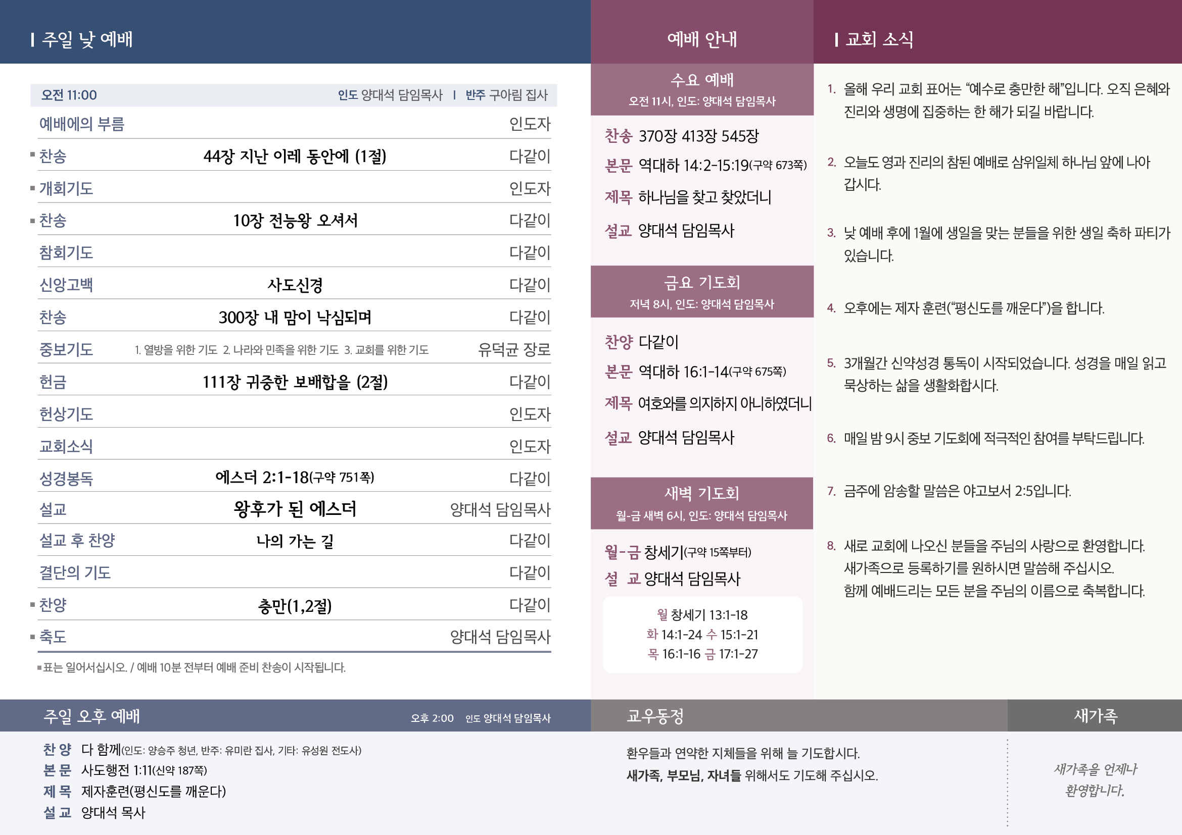 | 다음글 | 2026.01.11 주보 (통권 제11권 2호) | 운영자 | 2026.01.11 | 2 | 38 |
